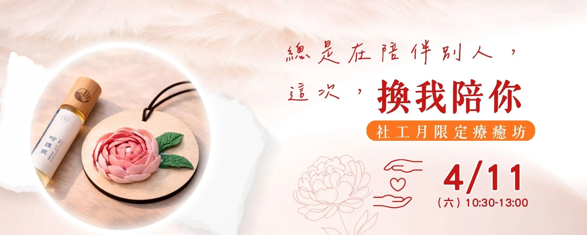 在社工日的這個月份,我們想向每一位陪伴者致敬。透過香氣覺察與石膏擴香花藝創作,以芼莨花象徵溫柔而堅定的光,為自己留一段被陪伴的時間。