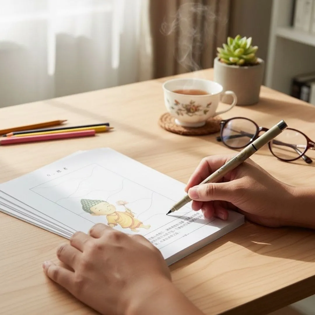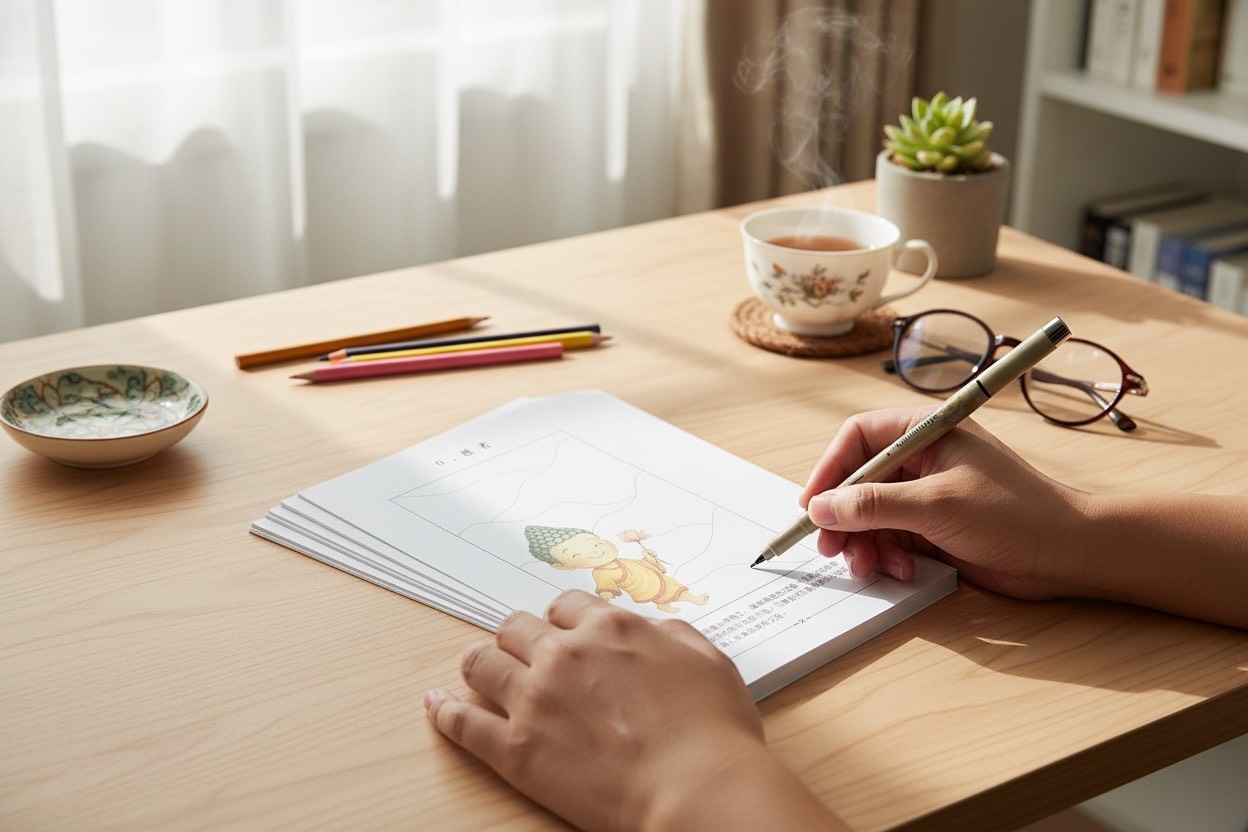 搭配「佛心禪繞畫卡」,透過線條、圖案與節奏,落實覺察與專注。